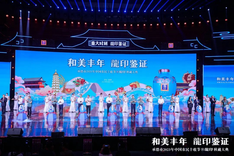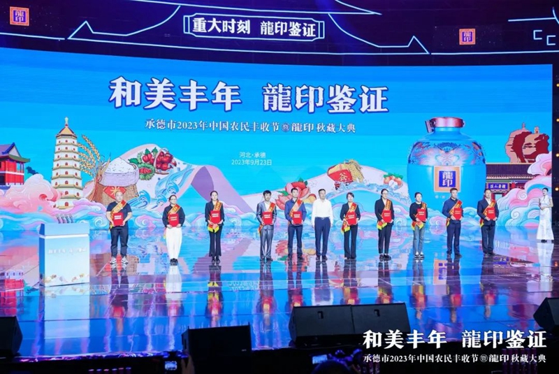 禮贊豐收年,共品龍印酒。9月23日,由承德市人民政府、河北廣播電視臺(集團)聯(lián)合主辦;由承德縣人民政府、承德市農(nóng)業(yè)農(nóng)村局、承德市體育局協(xié)辦;由承德縣農(nóng)業(yè)農(nóng)村局、河北板城酒業(yè)、河北廣電廣告有限責(zé)任公司承辦的承德市2023年中國農(nóng)民豐收節(jié)暨龍印秋藏大典在承德市奧體中心圓滿落下帷幕。板城酒業(yè)駕起卓越追求的時代巨輪,乘歷史文脈之槳,掌匠心傳承之舵,揚帆起航,再次譜寫龍印“秋藏大典”品牌文化IP的時代篇章。