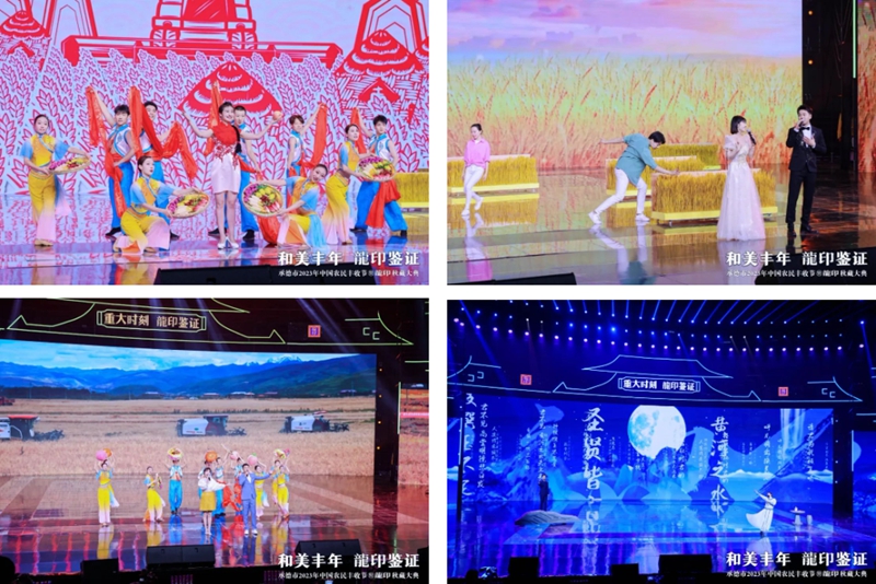 活動中,情景劇《歷史上的1717》通過舞臺技術(shù)實現(xiàn)康熙皇帝與趙弘燮跨時空對話,再現(xiàn)了“金木水火土,板城燒鍋酒”的傳奇故事,在無數(shù)板城人心中蕩起層層漣漪;《豐收中國》、《風(fēng)吹麥浪》、《豐收進行曲》等歌曲唱盡了農(nóng)民的喜悅,以及他們砥礪奮進的決心。