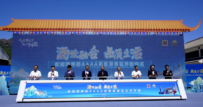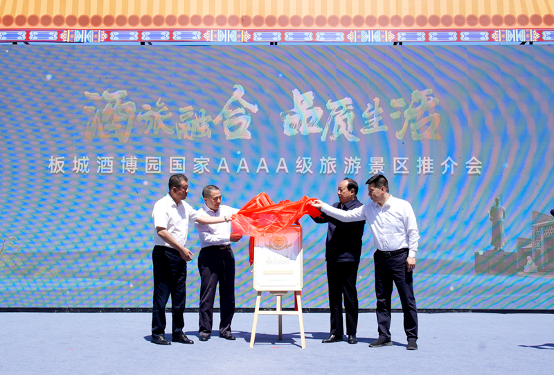 活動(dòng)現(xiàn)場,承德市政協(xié)黨組書記、主席吳清海;承德市人大副主任郭士剛;承德縣人民政府縣長柳雪松;河北板城酒業(yè)黨委書記、總經(jīng)理張春生登臺,共同為板城酒博園國家4A級旅游景區(qū)進(jìn)行揭牌。