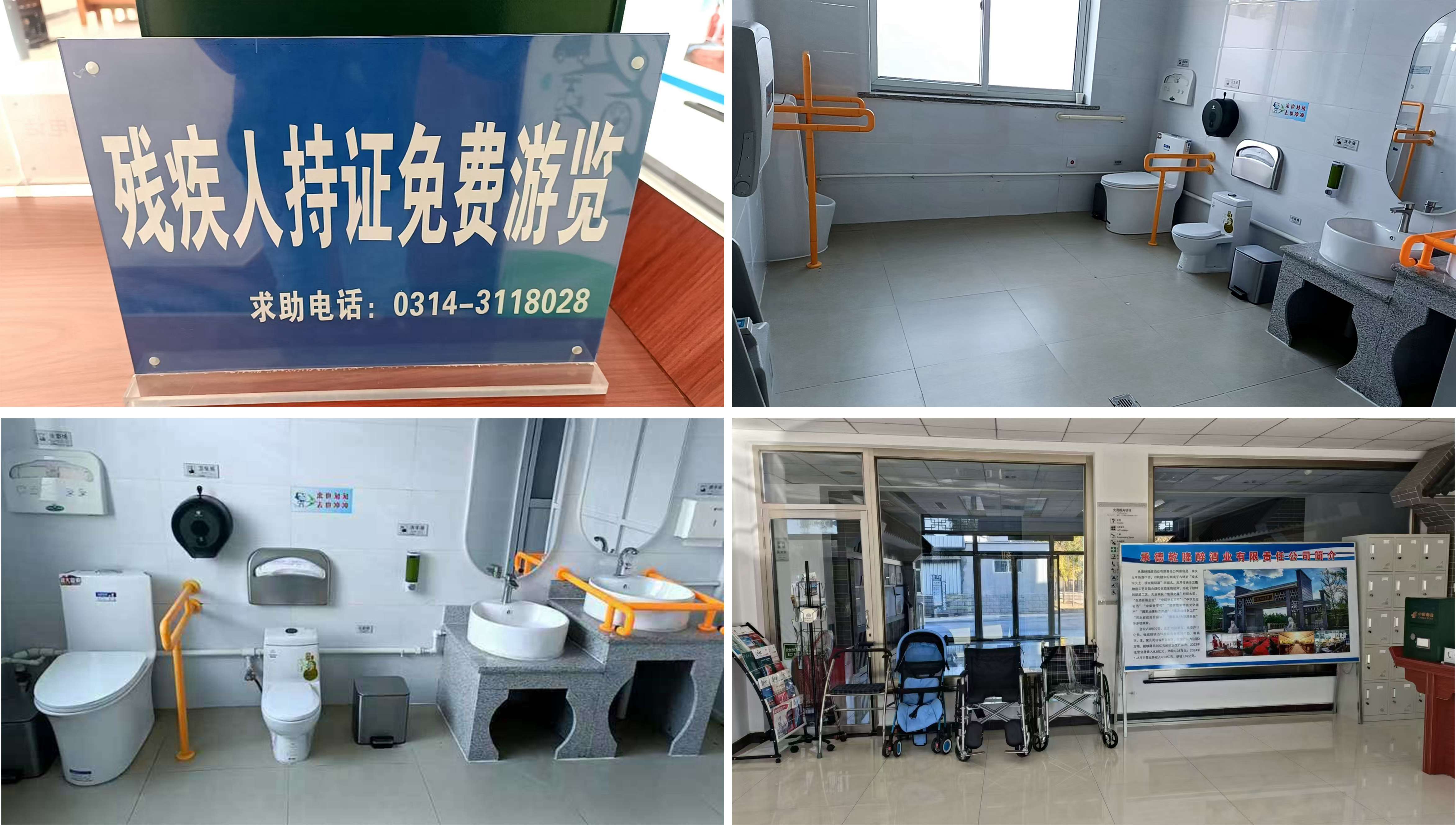 板城酒博園自創(chuàng)建之初,就按照A級景區(qū)標(biāo)準(zhǔn)來打造,充分考慮殘疾人保障政策的落實。在游客中心,設(shè)立殘疾人免費公告牌,并安排專人負(fù)責(zé)陪同和照顧;游客中心設(shè)置了殘疾人無障礙衛(wèi)生間、洗漱池、防滑地板等,免費為行動不便人群提供輪椅、拐杖等,使殘疾人也能享受到平等的參觀瀏覽待遇。