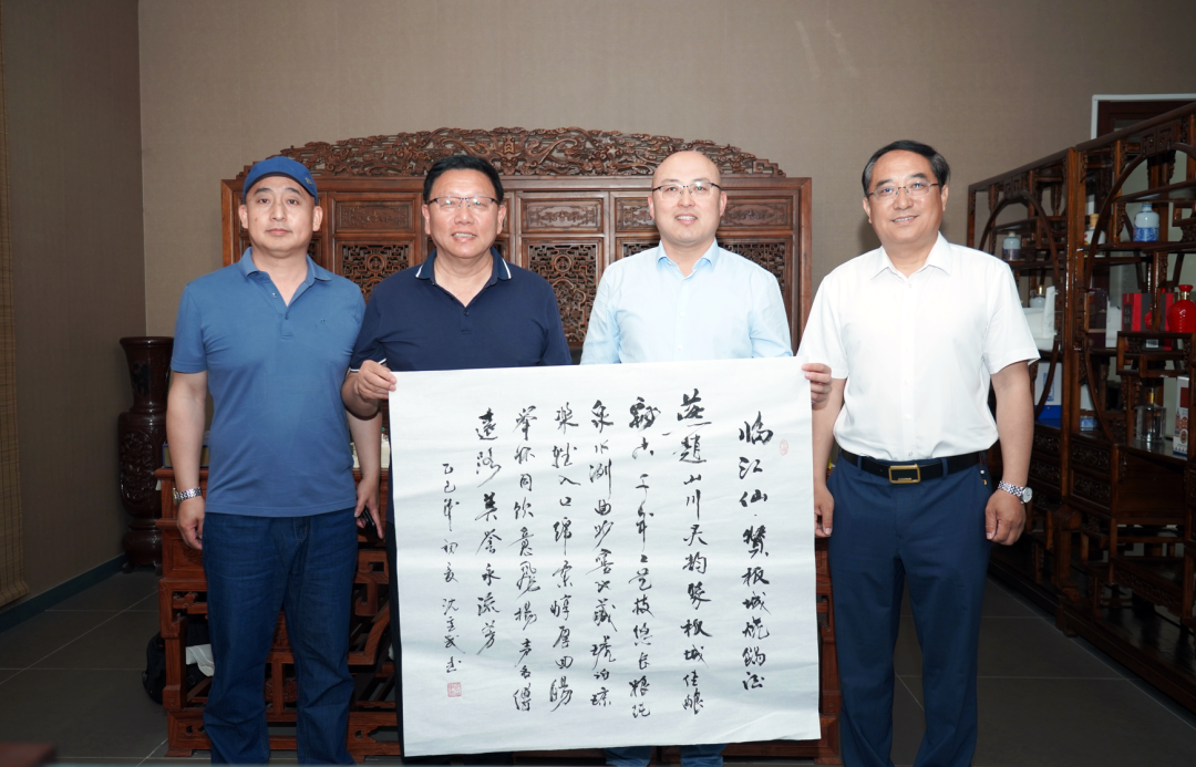 訪問期間,沈重武副會長現(xiàn)場揮毫潑墨,向板城酒業(yè)贈送書畫作品《臨江仙·贊板城燒鍋酒》,表達(dá)了其對板城酒業(yè)三百多年不間斷傳承的國家級非物質(zhì)文化遺產(chǎn)老五甑釀造技藝與“一店燒鍋兩朝御賜,乾隆妙對嘉慶天章”深厚歷史的稱贊。
