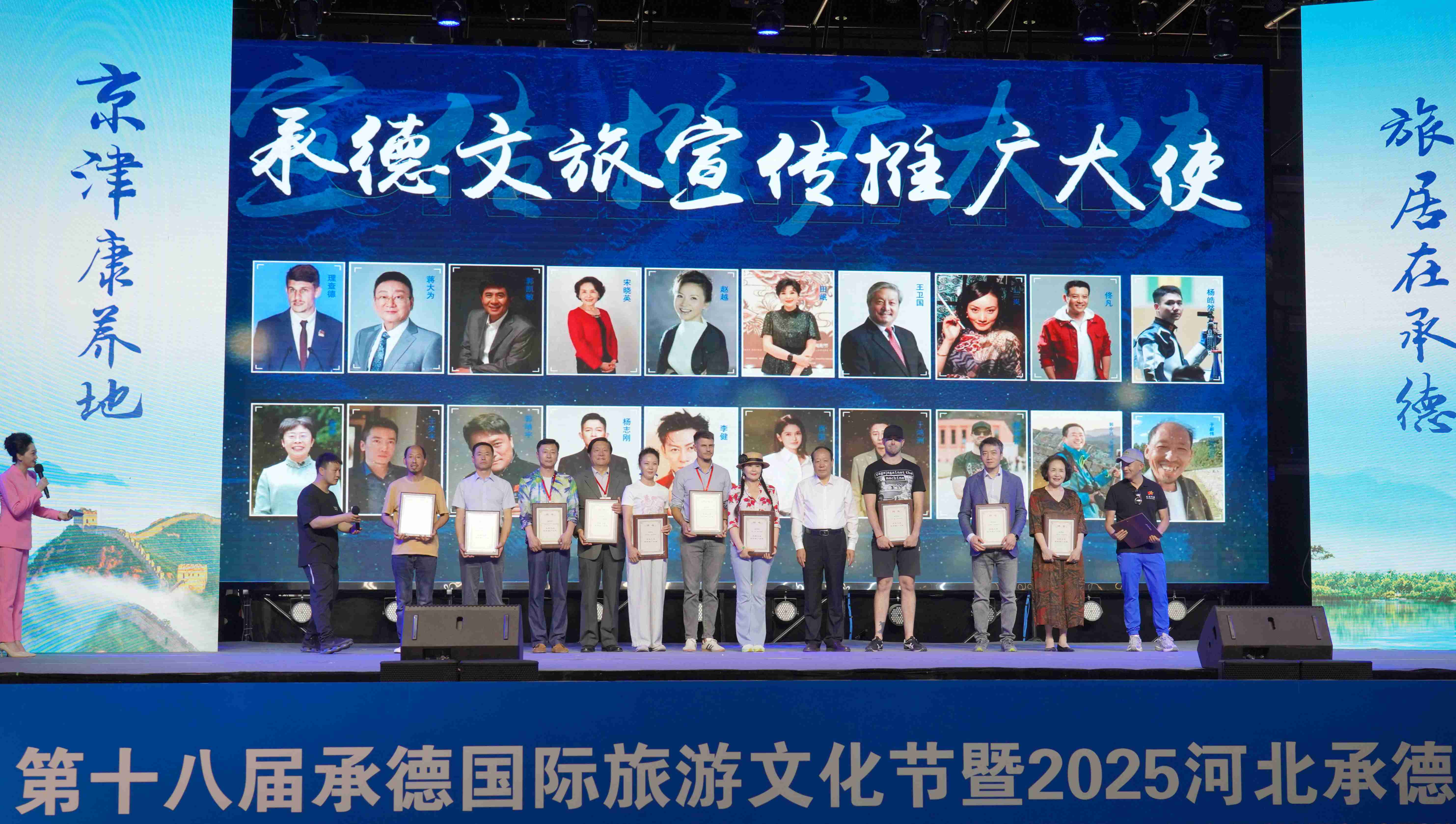 活動(dòng)現(xiàn)場宣布“承德文旅全球宣傳使者”名單,并由承德市政協(xié)主席吳清海為承德文旅全球宣傳使者代表頒發(fā)證書。