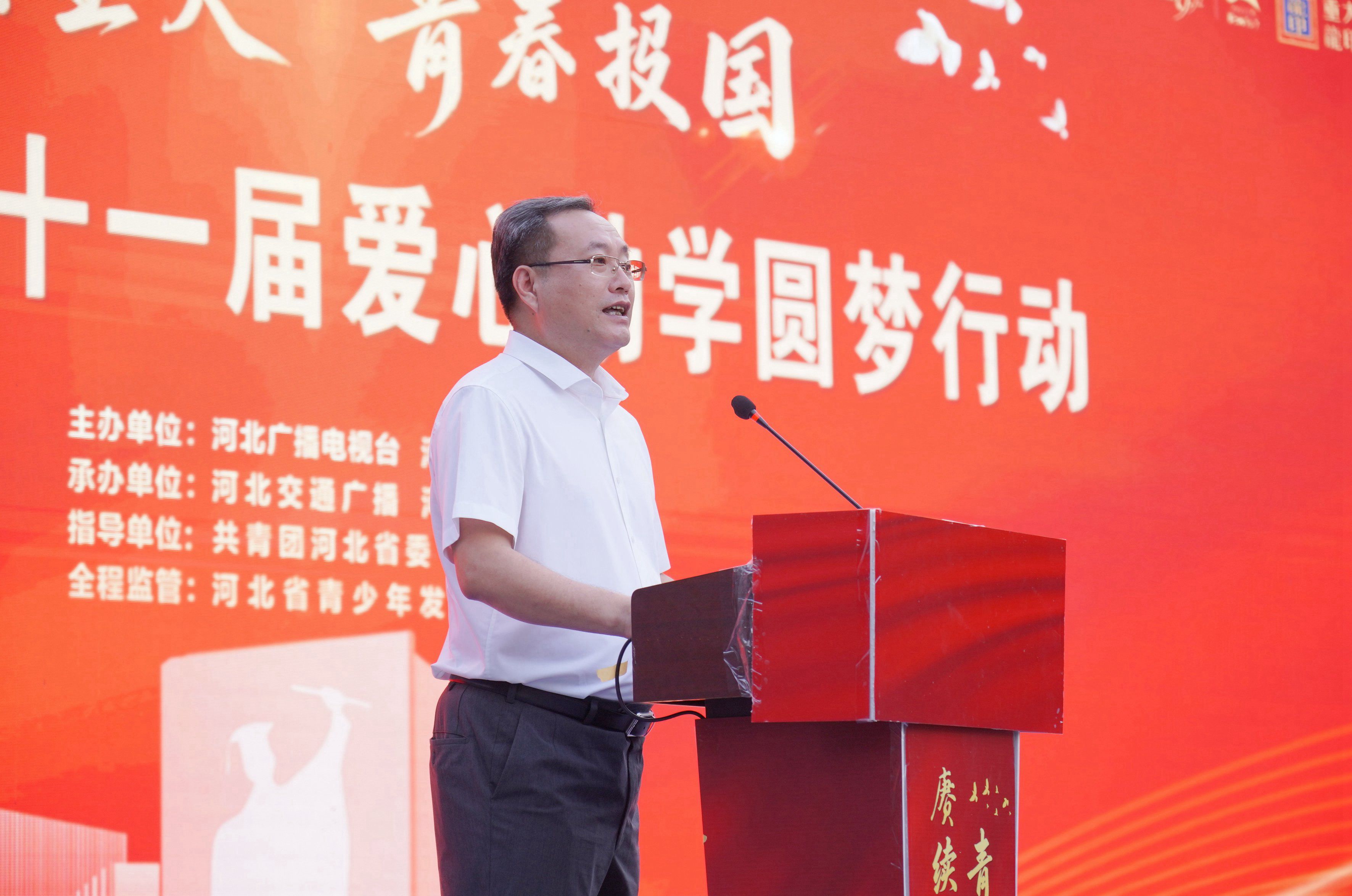 河北廣播電視臺(tái)副總編輯邊宇峰致辭,邊宇峰講到:“作為主流媒體、責(zé)任擔(dān)當(dāng),河北廣播電視臺(tái)始終與時(shí)代同行,與人民同向。值此抗戰(zhàn)勝利八十周年,我們賦予本屆活動(dòng)深沉的主題——‘賡續(xù)星火青春報(bào)國’這不僅是一次助學(xué)行動(dòng),更旨在為學(xué)子注入時(shí)代精神與國際視野,將個(gè)人理想熔鑄于民族復(fù)興的壯闊征程。讓我們攜手并肩,讓助學(xué)‘星火’代代相傳,照亮青春夢想,共繪時(shí)代華章!”