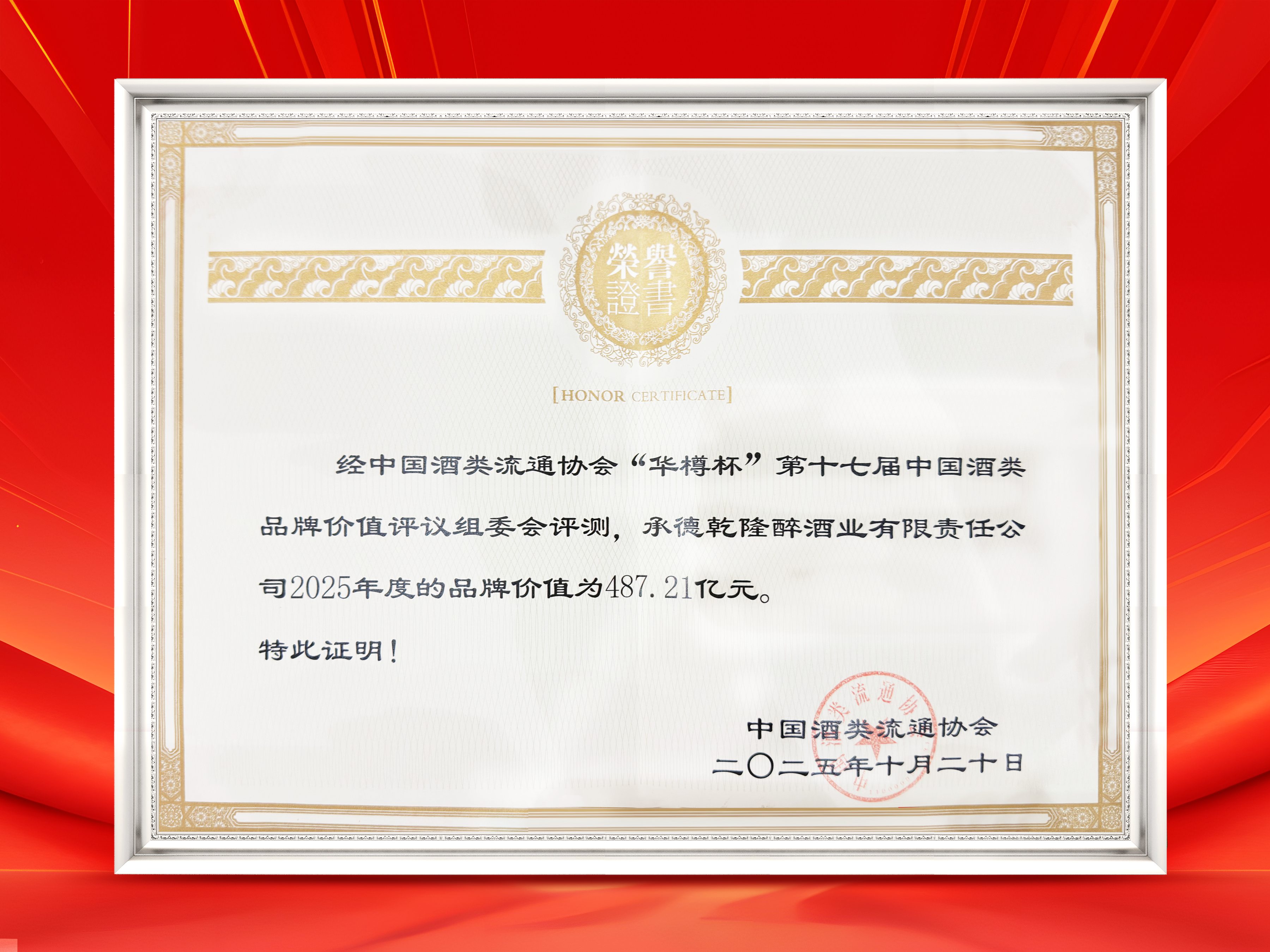 榮譽(yù)加冕,再創(chuàng)輝煌。在今日揭曉的第十七屆“華樽杯”中國酒類品牌價值評議中,承德乾隆醉酒業(yè)有限責(zé)任公司(板城酒業(yè))表現(xiàn)搶眼,品牌價值高達(dá)487.21億元,較去年實現(xiàn)顯著增長,位列中國白酒行業(yè)第25位,較去年提升五位。這一成績不僅彰顯了企業(yè)強(qiáng)大的綜合實力,更體現(xiàn)了行業(yè)專家與市場對板城品牌的高度認(rèn)可。