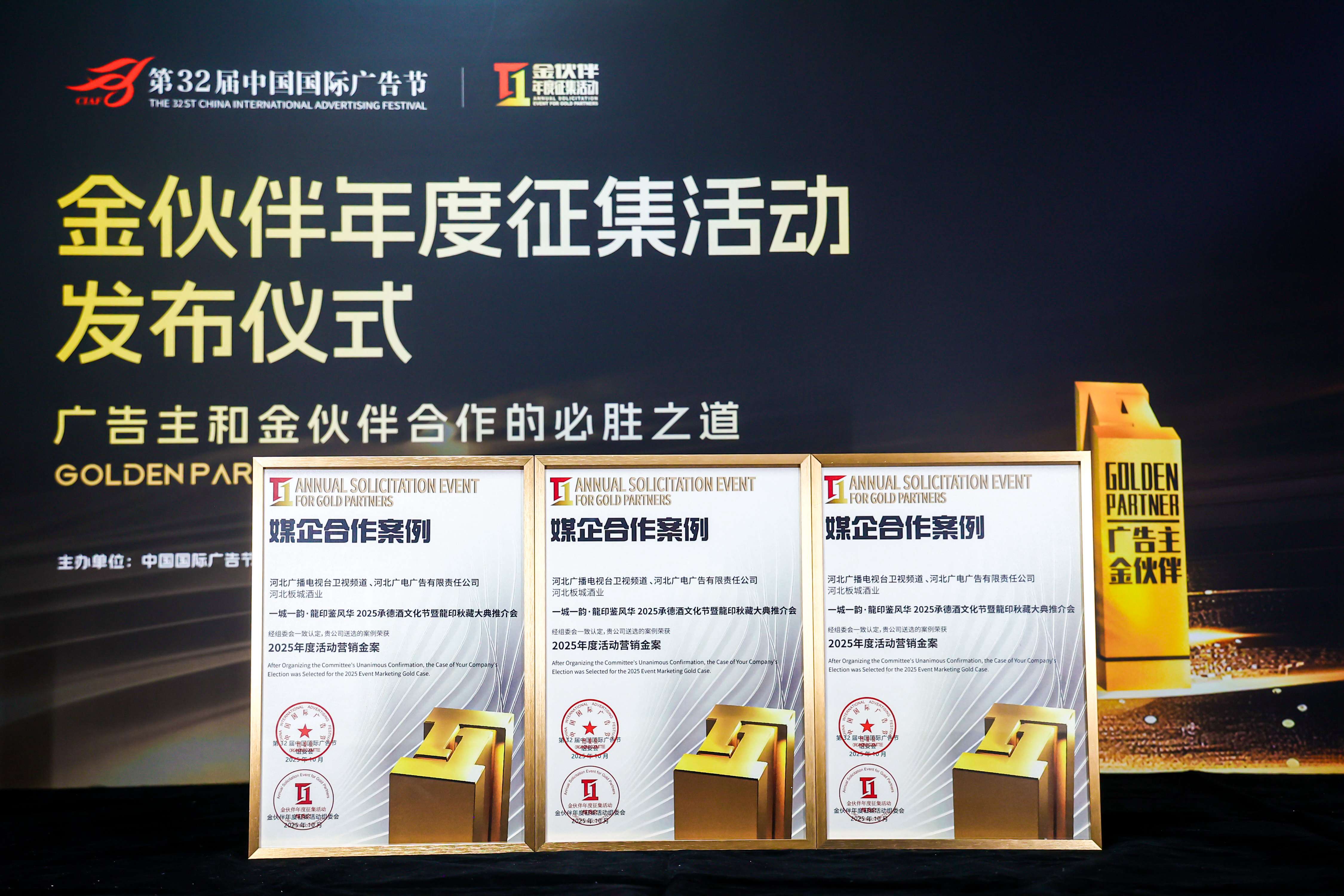 同時(shí),板城酒業(yè)與河北衛(wèi)視合作的“一城一韻,龍印鑒風(fēng)華2025承德酒文化節(jié)暨龍印秋藏大典推介會”案例榮獲2025年度活動營銷金案。