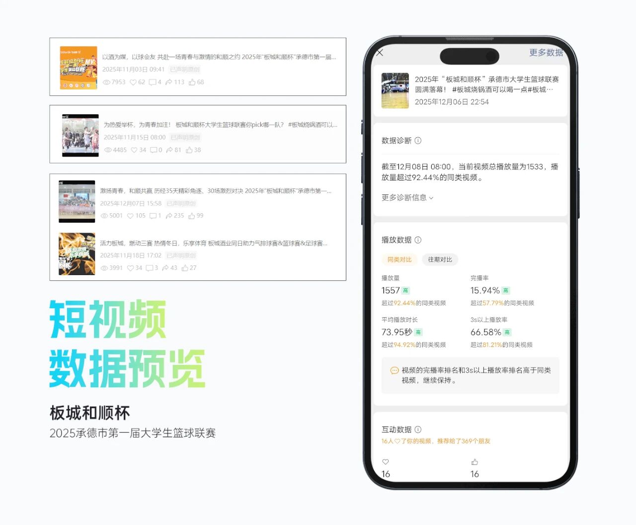 整體活動影響力顯著,賽事抖音曝光超214萬,累計觀看直播人數超15萬人,現場累計吸引觀眾逾2萬人次,承德市籃球協會微信公眾號相關閱讀量超2萬人次,板城酒業(yè)視頻號平臺相關播放量超2.5萬人次。